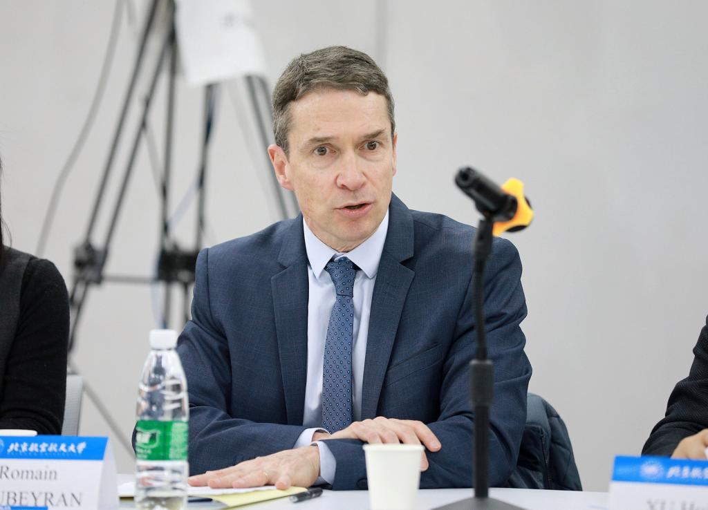 Romain SOUBEYRAN感谢学校的热情接待,这是他第一次来到北航,对学院崭新的教学环境和北航的发展感到由衷的敬佩。他指出,与企业合作伙伴保持紧密联系有利于工程师的能力培养,希望学院不满足于现在取得的成绩,继续加强硕士阶段科研能力的提升。