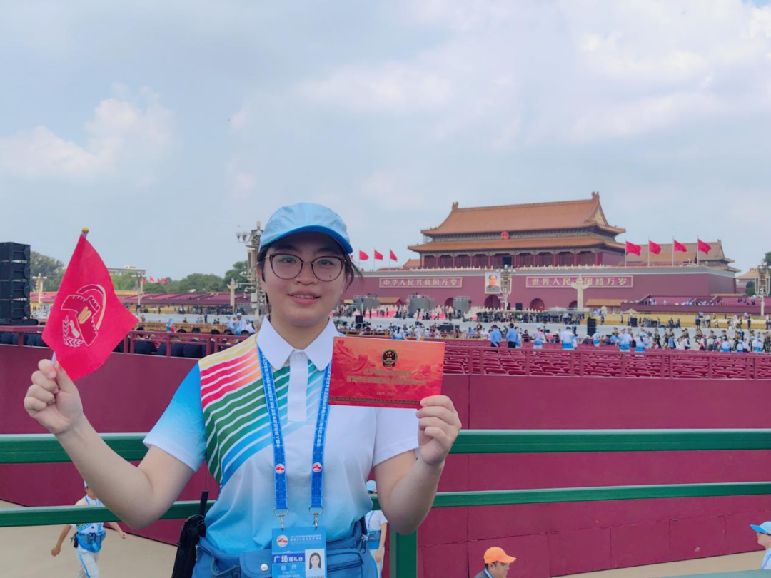 “这次同样是观礼台志愿者,并且参与了第三次演练。记得那天晚上下起了雨,但即便如此,我们所有志愿者也没有被影响,都顺利完成了自己的任务。要说这次经历里印象最深刻的,应该是演练结束后返回远端集结点的那段路。因为有保密要求,我们不能带手机,当时各个高校的志愿者都聚在地铁站等车,大家一起聊天说笑。在那个瞬间,我特别强烈地感受到一种集体团结感和幸福感,这种感觉特别纯粹,不管大家是来自哪个学校或者负责什么岗位,那一瞬间,我们感到是青年人的整体。这段经历给我带来了很多精神上的收获,也成了我心里一段很难忘的记忆。”