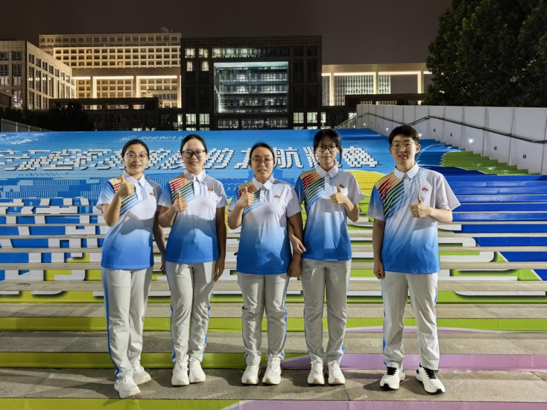 陈闻园、吴雨萱、赵然、秦瑜航4位志愿者参与此次观礼台志愿者的任务,在演练过程中即使顶着大雨也坚守岗位、优异完成任务,体现北航人、中法人坚韧不拔勇于担当的青春力量。